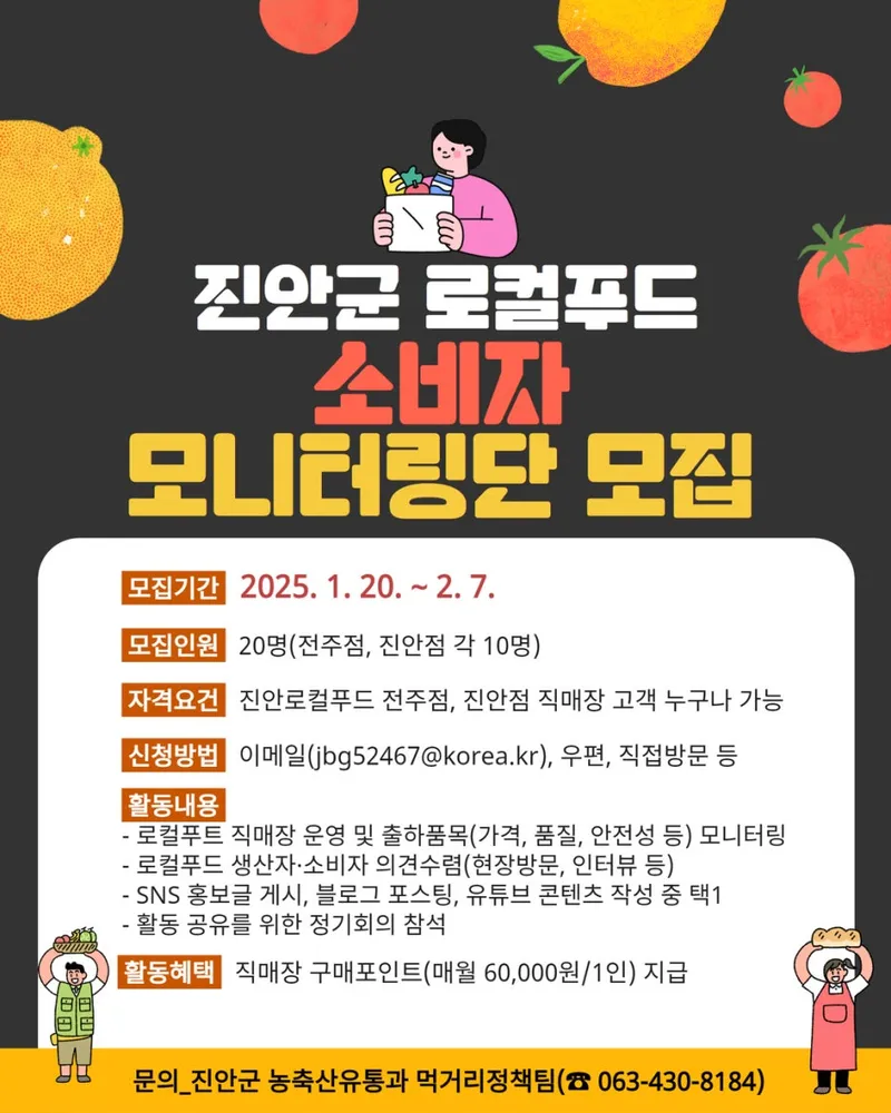 진안군 로컬푸드 소비자 모니터링단 모집 안내