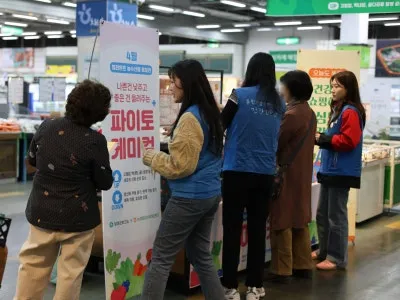 보건소 직원분들이 장보러 나오신 주민들에게 다양한 정보를 제공하는 캠페인을 하고 계셨는데요,