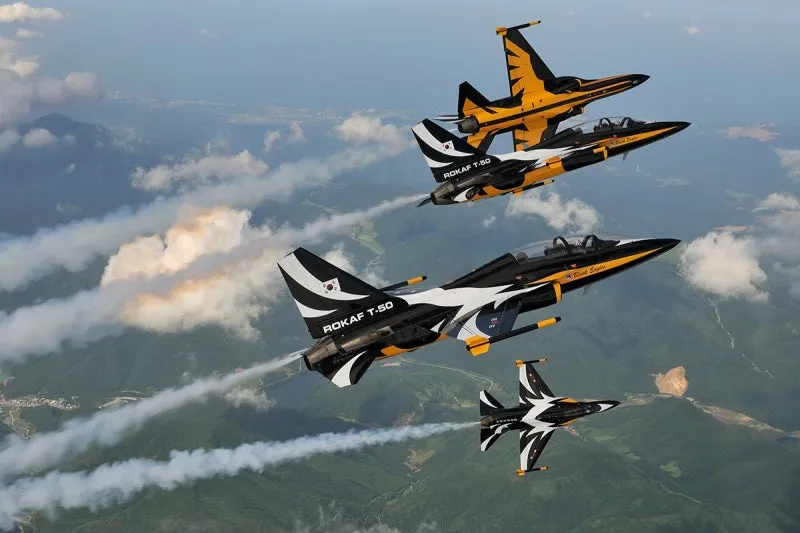 공군 에어쇼 특수비행팀인 블랙이글스의 도장이 되어 있는 것이 특징입니다. 현재 블랙이글스의 주기종인 T-50B 이전에는 이 전투기를 사용했습니다.