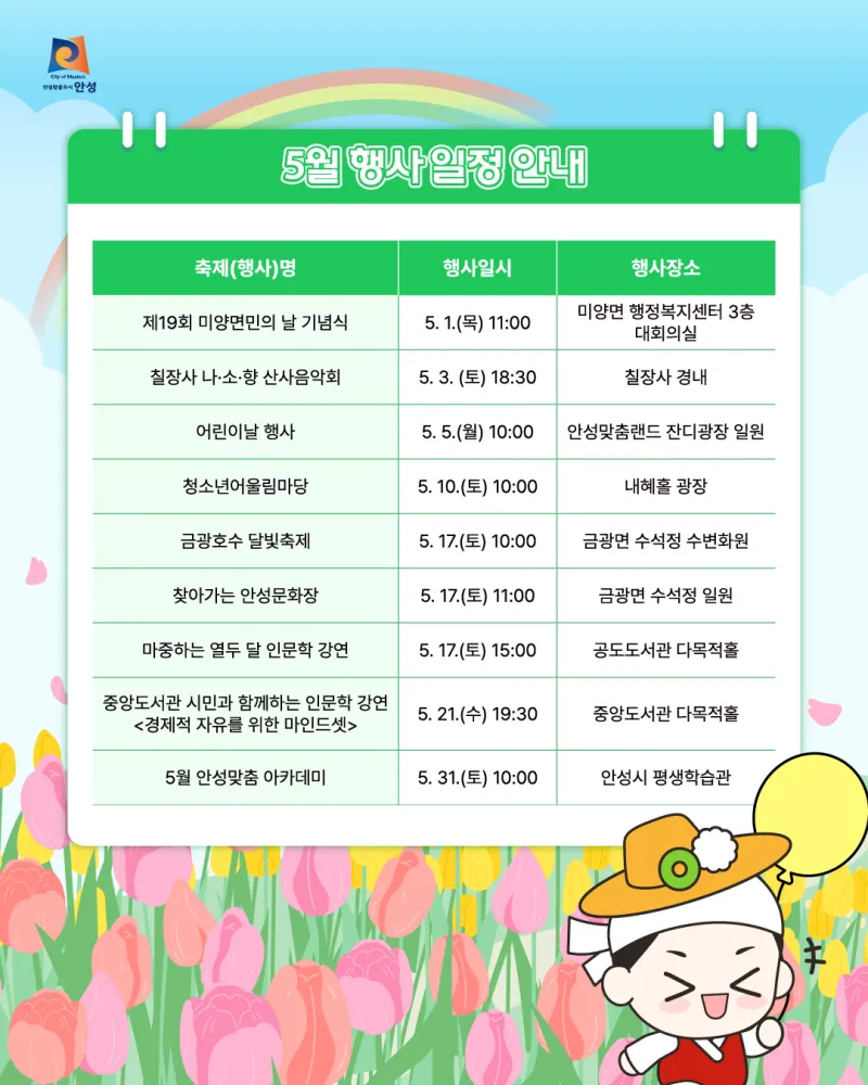 안성시 5월 행사 일정을 안내해 드립니다! :D