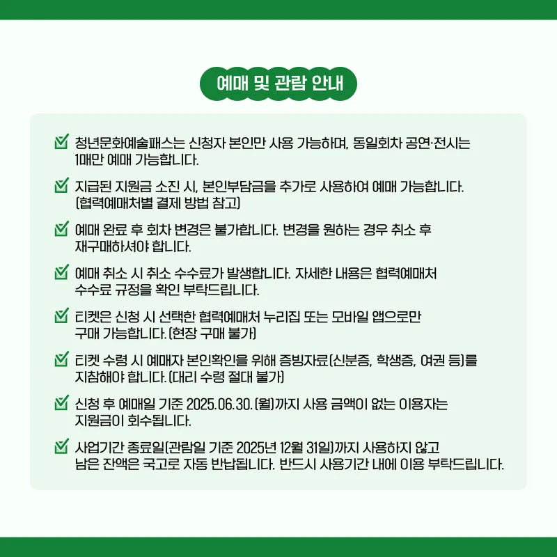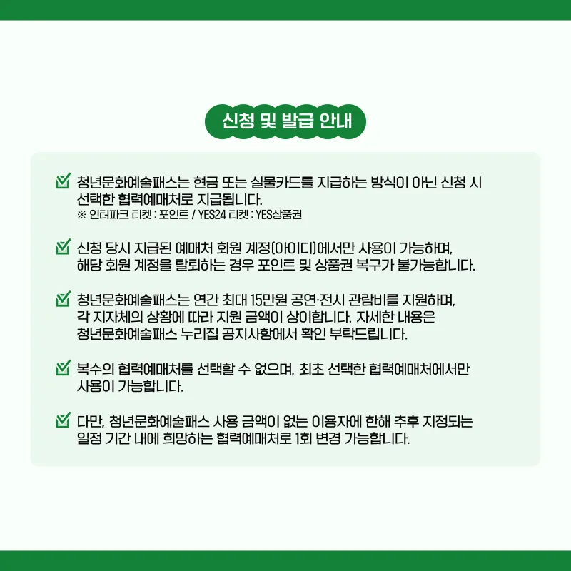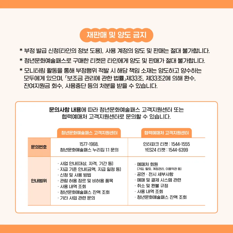 청년문화예술패스 고객지원센터 ☎ 1577-1968