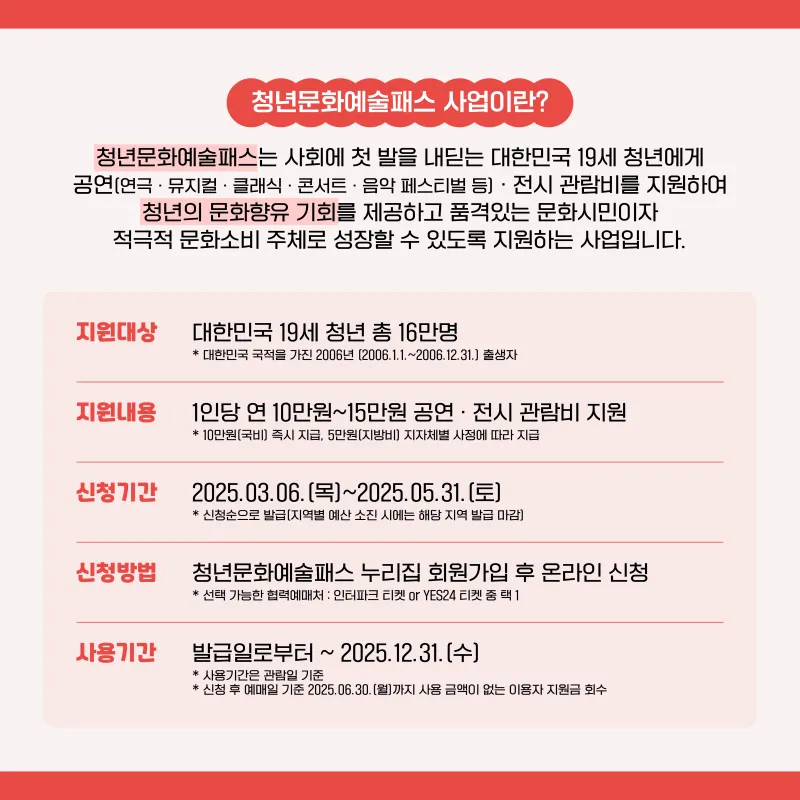 06년생 주목! 청년문화예술패스로 공연, 전시비용 아끼세요!