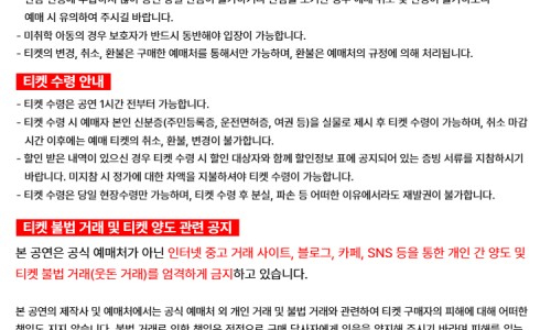 [플라워] 김경호 & 플라워 장소 다산아트홀 기간 2025년 12월 13일 ~ 2025년 12월 13일 공연시간 12월 13일(토) 오후 5시 입장권 가격 1층 5만원 / 2층 3만원 관람등급 만 7세(2018년생) 이상 관람가능(생년월일 증빙자료 지참 필수) 문의 031-590-4358, 4361 [콘서트 ] 김경호 & 플라워 * 티켓 예매 오픈 일시: 11월 7일(금) 오후 3시 · 예매는 공연 1시간 전 , 취소 및 변경은 공연 1 일 전 오후 5 시까지 가능합니다 . * 본 공연은 1인 5매까지 예매...