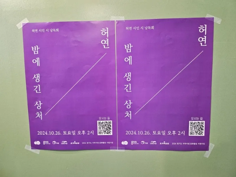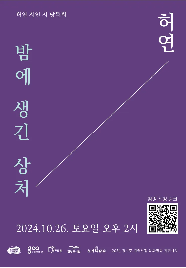 오늘 포스팅 주제는 바로 🧑<허연 시인 시 낭독회 : 밤에 생긴 상처>에 다녀온 후기예요.