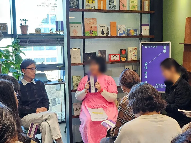 🌞따뜻한 가을날, 구리시의 작은 서점 📚'춘가책상점'에서 특별한 문학의 향연이 펼쳐졌는데요, 2024년 경기도 지역서점 문화활동 지원사업의 일환으로 진행된 🧑허연 시인의 시 🎙️낭독회는, 마치 오랜 친구와의 대화처럼 편안하고 따뜻한 분위기 속에서 진행되었어요.