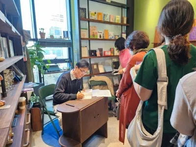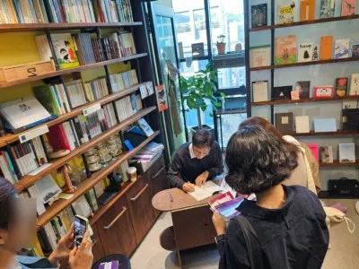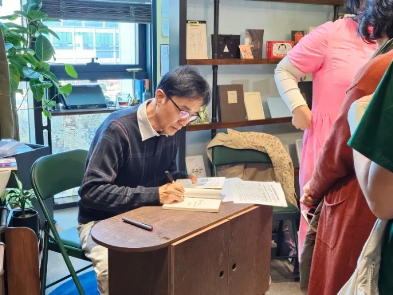 낭독회가 끝나고 🧑시인님이 직접 시집에 따뜻한 말씀을 ✍️적어 주시는 싸인회를 갖기도 했어요.